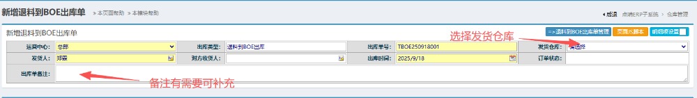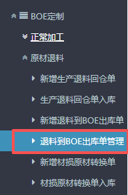 5.提交后,回到左侧功能菜单找到“退料到BOE出库单管理