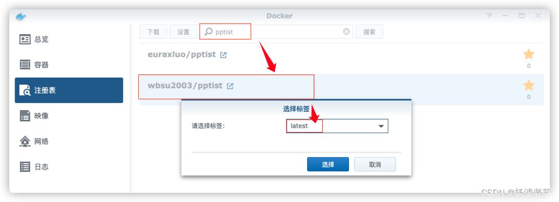 在注册表中搜索 pptist ,选择第二个 wbsu2003/pptist,版本选择 latest