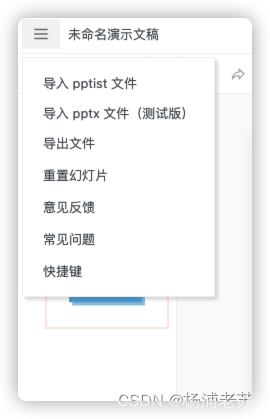 今天我们要介绍的是一个适用于所有人的演示工具,名为 PPTistPPTist 提供了各种美化选项,可以帮助您更加精美、流畅地修饰您的幻灯片,使其更加吸引人。无论您是开发人员还是其他领域的专业人士,PPTist 都是一个功能强大且易于使用的工具,能够让您的演示更加出色。