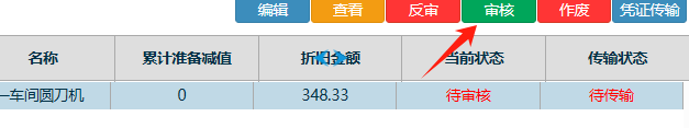 点一条折旧单后,再点击审核按钮