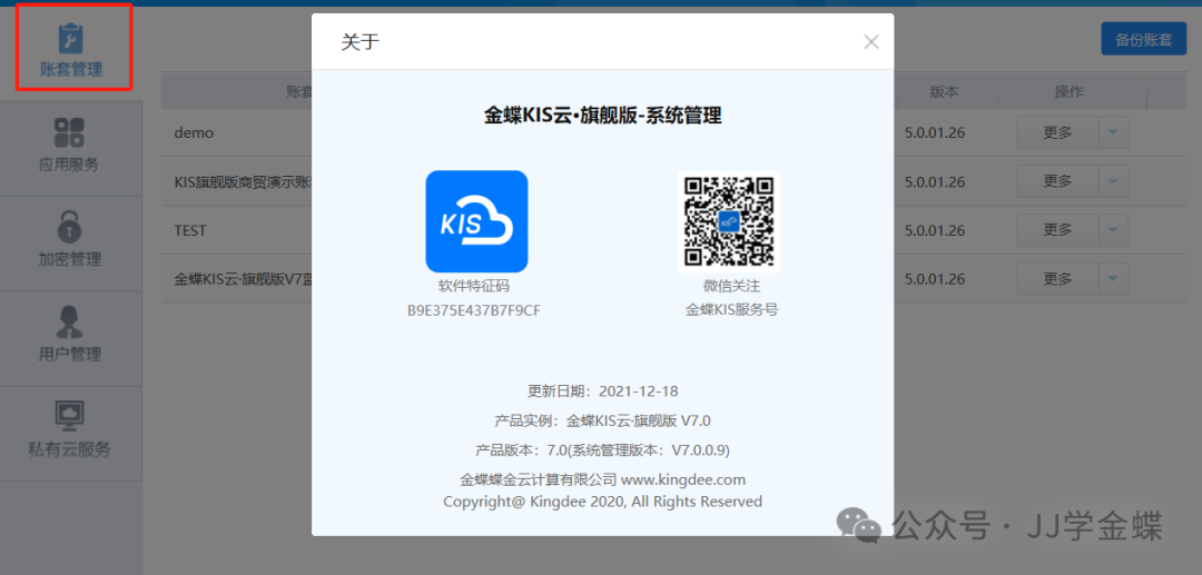 1)开始-所有程序-金蝶KIS专业版-工具-账套管理;