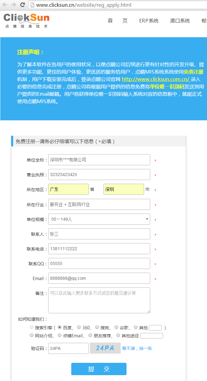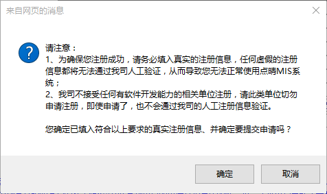 为了了解本软件在各个用户中的使用情况,以便点晴公司进行更有针对性的后续开发升级、提供更多功能、更佳体验的产品给用户,点晴MIS系统基础平台使用了免费注册机制,要求用户下载安装完毕后,必须登录点晴公司官方网站 / 录入必要的信息,点晴公司将根据用户提供的信息免费将单位唯一识别号发送到用户提供的Email邮箱,并且在点晴公司网站提供了按照申请单位营业执照号码的方式查询单位唯一识别号,方便客户随时查询自己的识别码。用户将获得单位唯一识别号输入系统的对应框中,就完成了系统的注册了。