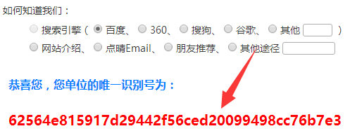 点晴免费OA办公系统注册的网址如下,注册后就会获得单位唯一识别号了:http://www.clicksun.cn/website/reg_apply.html