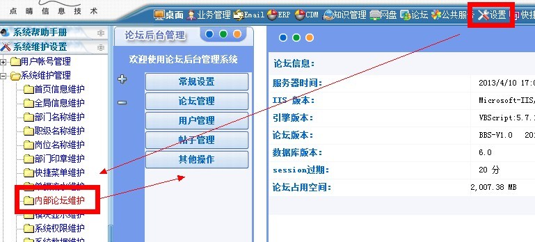 点晴永久免费OA系统的内部用户交流论坛在哪里启用和管理啊?如何设置访问权限?