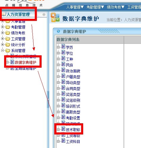 [点晴永久免费OA]请问:人事档案管理中基本信息里技术职称这一项怎么没有东西选择呀?